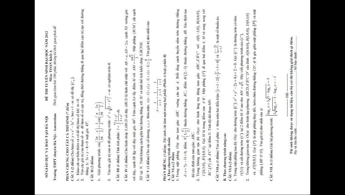 Đề thi thử lần 1 môn toán trường THPT Thanh Miên 1 - Hải Dương
