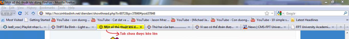 * Kích vào một tab bất kỳ để đóng tab đó lại.