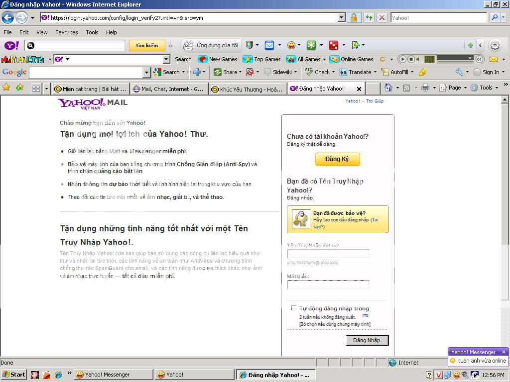 chuyển từ "MSN" sang "YAHOO" rồi đăng nhập (ảnh)