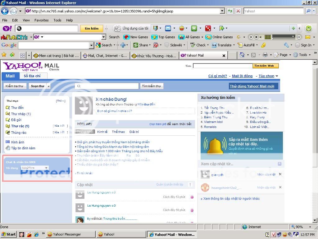 Sau khi đăng nhập bạn sẽ vào hòm mail của mình. Hãy chú ý cái khung đỏ trong hình bên dưới. (ảnh)