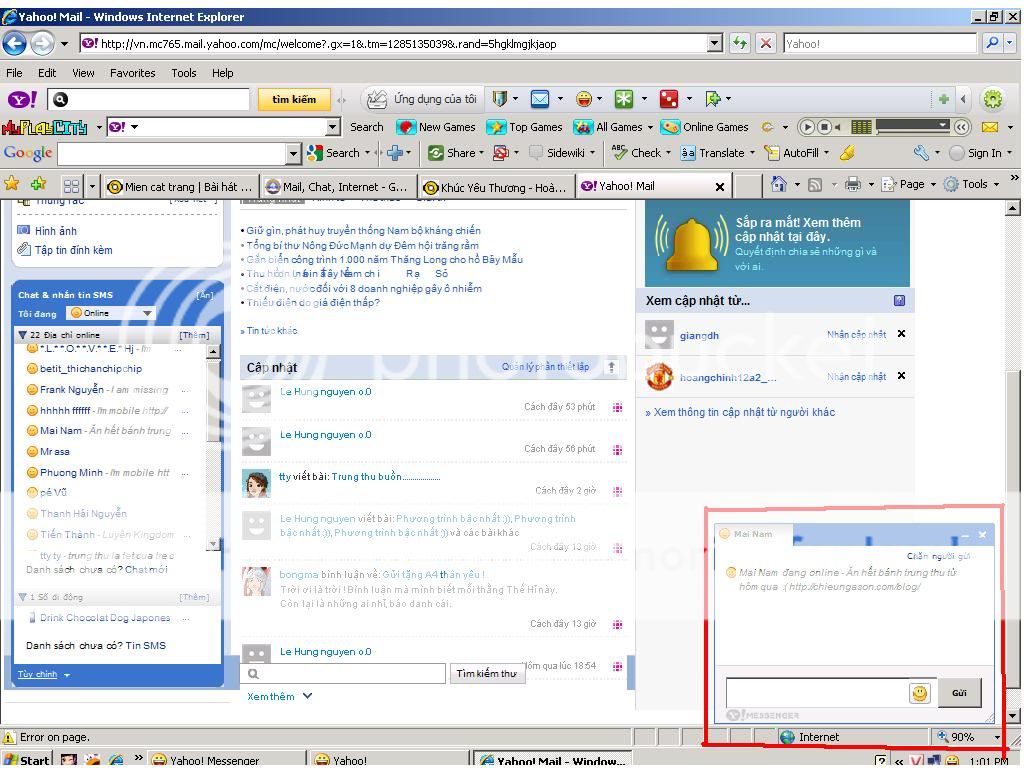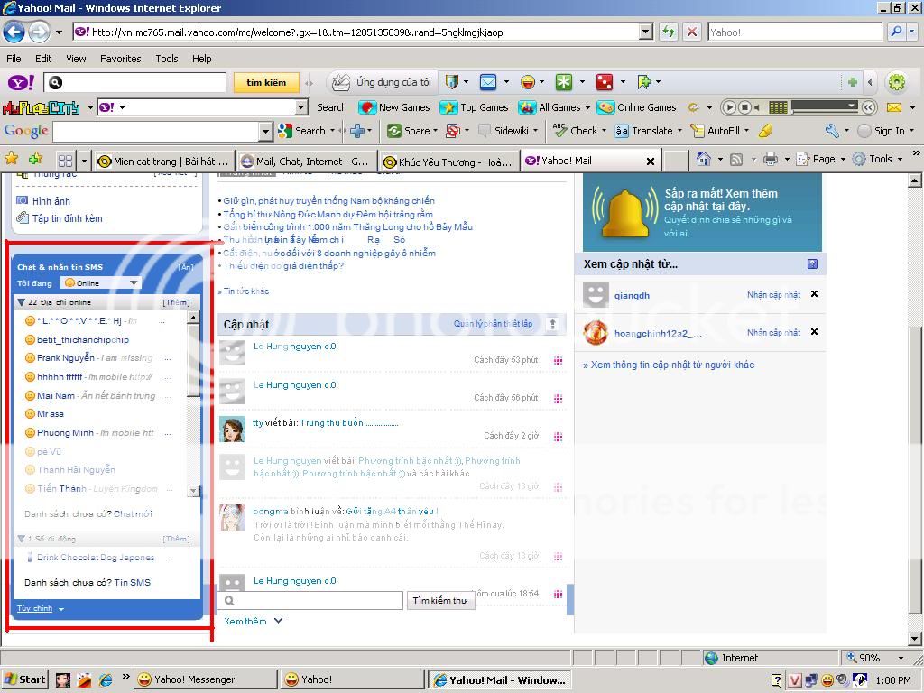 Sau khi đăng nhập sẽ nổi lên 1 khung chat giống như yahoo với hầu hết các tính năng như yahoo mà dùng mail ko có.