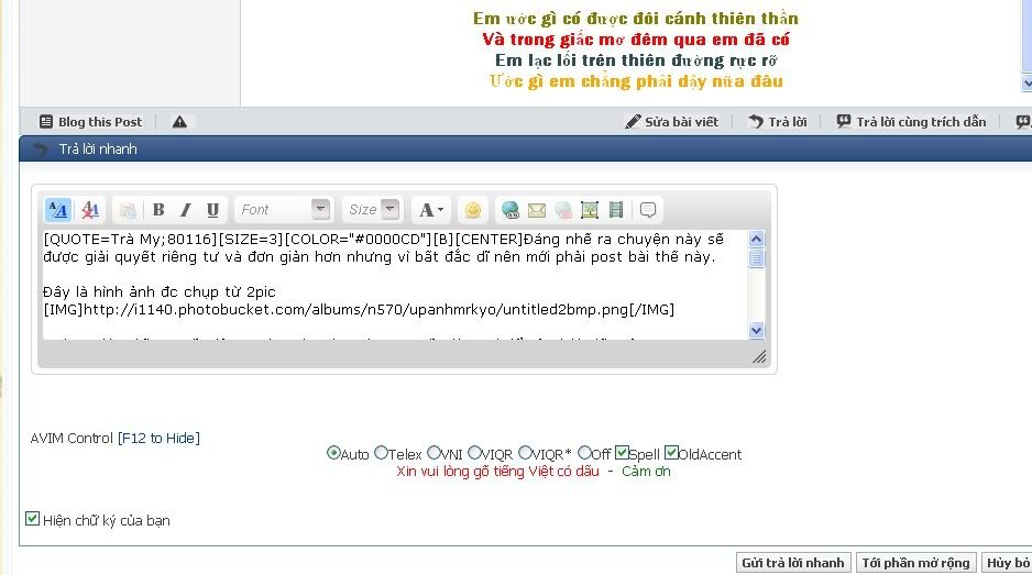 Đề nghị mod Ex xem xét lại cách làm của mình nhé, đường đường chính chính là 1 mod mà lại trả lời trích dẫn nhầm thành sửa bài viết, mà k nhầm ở bài nào lại nhầm đúng ở bài này cơ chứ, như thế này thì lại hỏi tại sao mem sai, mod còn đag sai huống chi là mem. Đành rằng là mod, admin, smod, hay bất kể ai đi nữa ai mà chẳng có cái sai. Nhưng mod hãy xem lại cái sai của mod xem, có thuyết phục tí nào không, nhìn nhé: