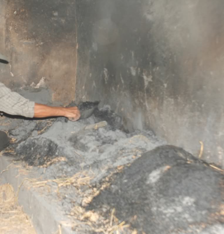 1.Sau khi lấy nội tạng, nhồi lá sả và đang ủ trấu đây